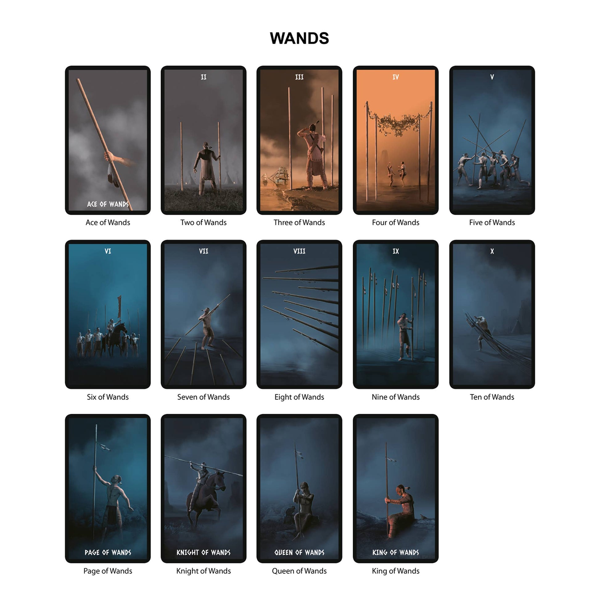This deck represents an homage to Native American ways of life, which are significant throughout North American art and history. The artist uses muted tones to show the archetypes of the tarot in the many facets of the indigenous societies of the North American continent.